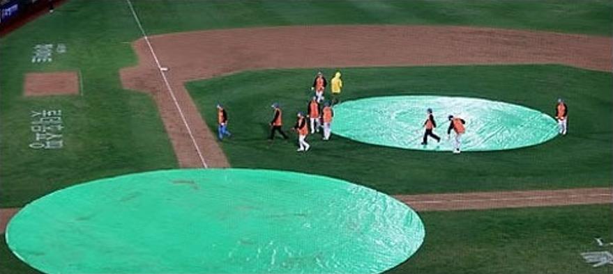 경기를 진행중일 때 갑자기 많은 량의 비가 내린다면 주심의 재량으로 잠시 대기하며 비가 잦아들기를 기다립니다. 하지만 비가 계속해서 많이 내려서 경기를 재개하기 어렵다고 판단이 된다면 게임을 중지하게 됩니다. 하지만 6회까지 게임을 진행하고나서 취소 하게 되면 이때는 강우콜드이라고 해서 이기고 있던 팀의 승리로 게임을 종료됩니다. 게임 중간에 취소가 되지만 6회까지 경기를 치렀고 모든 기록이 남기 때문에 이때 환불은 되지 않습니다.