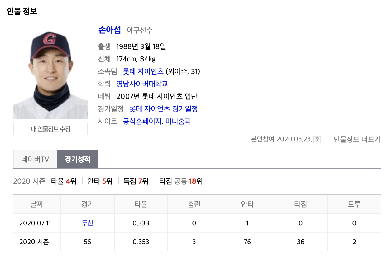 현재 롯데의 외야수로 활약하면서 아주 꾸준히 3할의 타격감을 보여주고 있습니다. 심지어 3년 연속 180개의 안타를 쳐내면서 어마어마한 모습을 보여주고 있습니다